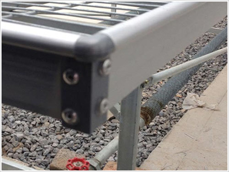 移動(dòng)苗床是由苗床腿架、苗床邊框(鋁合金材質(zhì))苗床網(wǎng)片(網(wǎng)孔30*130、絲徑3.0mm、3/4mm也可定做)苗床橫支撐、斜拉桿、苗床手輪、滾動(dòng)管、鋁合金連接片、苗床網(wǎng)連接片等苗床配件組成。